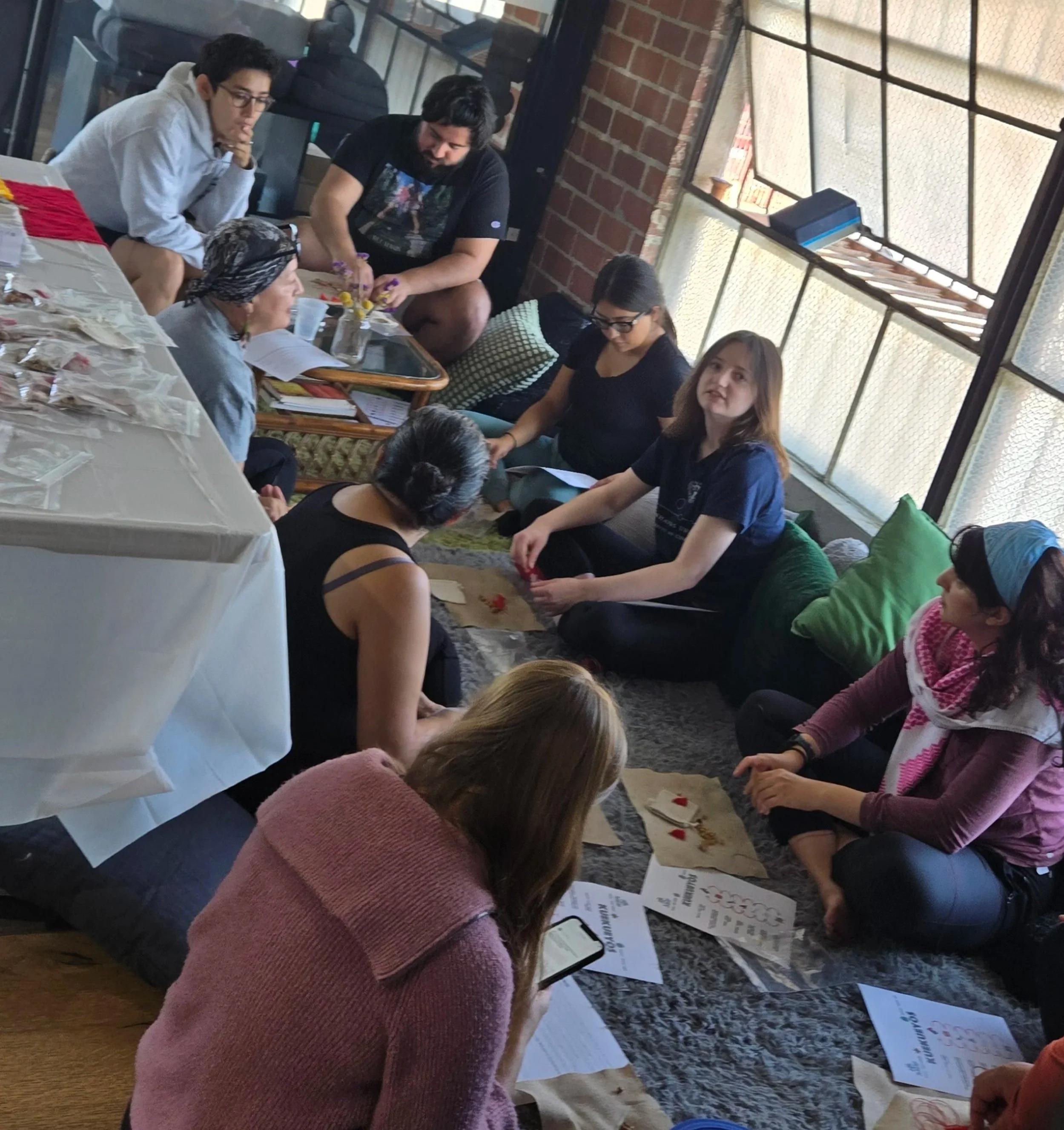 The space is housed on the SoLa Beehive Campus at 918 E. 60th St, Los Angeles, CA 90001, just ten minutes south of downtown Los Angeles and five minutes from the 110 freeway. We offer an inviting, warm space with beautiful large windows, natural light, central air/heat, wifi, high ceilings, and audio/visual equipment. We also have a kitchen space with a long dining table, refrigerator, microwave, and large kitchen sink.